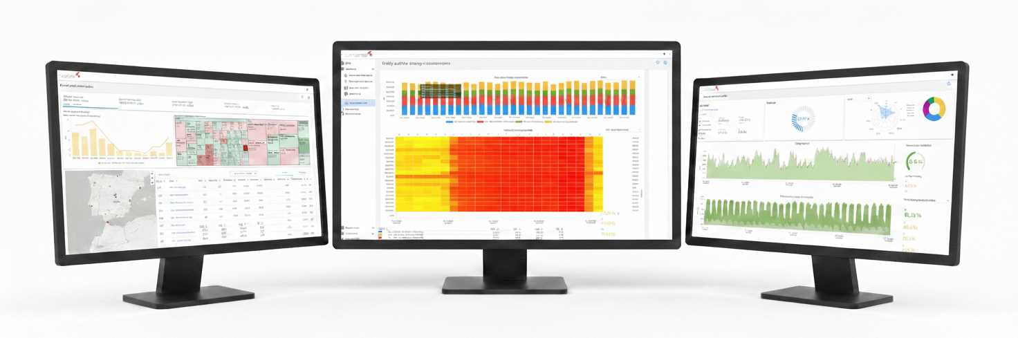 This allows energy managers to compare locations, identify high-impact sites, monitor overall performance, and understand how each asset contributes to total energy consumption. Combined KPIs, rankings, temporal trends, and geolocated views provide a clear and consistent picture of energy usage across the entire organization.
